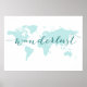 Affiche Voyage, désir de voyager, carte du monde turquoise