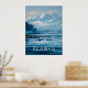 Capturez la beauté de la Dernière Frontière avec cette affiche de voyage moderne en Alaska. Présentant un design audacieux avec des baleines et un paquebot de croisière, cette oeuvre apporte une touche nouvelle aux imprimés de voyage classiques. Parfait pour ajouter une touche aventurière inspirée de la flânerie à votre mur de maison, de bureau ou de galerie.