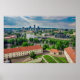 Peinture de vue d'en haut de Vilnius, Lituanie. Vue aérienne de Vilnius, toits rouges, rivière, gratte-ciel dans le quartier des affaires.