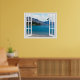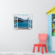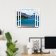 Belle vue calme sur le lac de montagne, scène de faux fenêtre, pour un bureau sans fenêtre. Affiche d'illusion optique paysagère très réaliste qui aurait l'air superbe sur un mur de bureau ou d'étude.