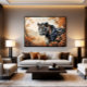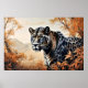 Un majestueux jaguar émerge parmi le feuillage aux tons chauds, dégageant force et mystère. Son regard perçant révèle l'essence indomptée de la nature, transformant l'oeuvre en hommage au pouvoir animal et à la beauté vivante de la vie sauvage.