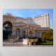 Cette vue imprenable sur Monte Carlo à Las Vegas comprend la lumière du soleil brillant d'une fontaine en face, des ombres traversant la grande façade de l'immeuble, et la verdure dorée dans l'après-midi chaude.