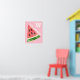 W est pour Watermelon Poster avec arrière - plan rose pastel, 8x10 pouces en impression haute résolution mat. Idéal pour la chambre d'un enfant ou la crèche. Poster peut être customisé avec votre texte et couleur arrière - plan.