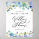 Affiche Watercolor Blue Hydrangeas Wedding Shower Welcome