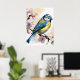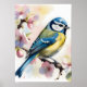 Affiche Watercolor Blue Tit Bird on Apple Tree Spring