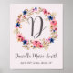 Affiche Watercolor Flowers Pink Baby Girl Name Birth Stats