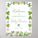 Affiche Watercolor Green Clovers Baby Shower Welcome Sign