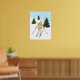 Affiche Watercolor Skier And Slopes With Fir Trees Winter