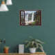 Beautiful waterfalls view, faux window scene, for a windowless office wall. Fun, realistic optical illusion scenic poster for an office or study wall.