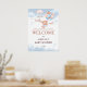 A sweet baby shower welcome poster featuring an adorable teddy bear holding blue and blush balloons with soft cloud and star details. The playful “We Can Berly Wait” phrase gives this watercolor design a warm and memorable look, perfect for greeting guests in style. A lovely choice for a baby boy shower, teddy bear theme party, or coordinated pastel event decor.
