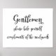A simple and beautiful calligraphy "Gentlemen please help yourself compliments of the newlyweds " sign. This hand-lettered sign can be used to add a modern style in wedding receptions or any party. I do offer a free customization service, please contact with me if you have any special request.