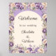 Greet your guests with this elegant Watercolored Lavender Wedding Welcome Poster. The design features a delicate watercolor arch of purple lavender blooms against a soft cream, champagne colored arch background. This poster is perfect for directing family and friends at an outdoor summer garden ceremony.