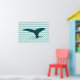 A graphic design of a whale tail on a chevron sea. Good to adorn your home or office walls. It will fit fine in a beach house decoration.