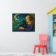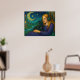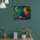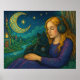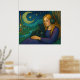 Affiche Whimsical Girl with Black Cat Under Crescent Moon