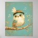 Add a touch of magic to your baby's nursery with this charming wall art featuring an adorable fluffy bird in a fancy feathered hat, perched on a branch and singing sweet notes. Vintage-style with soft turquoise background and golden accents, perfect for kids' rooms, baby showers, or whimsical gifts.