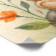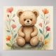 Cette affiche horizontale présente une aquarelle fantaisie d'un ours en peluche doux et amical avec des fleurs mignonnes.