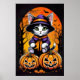 Laissez libre cours à l'adorable esprit d'Halloween avec cette affiche de charme. Un chaton mignon, avec des yeux qui brillent comme des lunes de croissant, perche au-dessus de citrouilles taillés de manière complexe. Ses whiskies se tordent de curiosité alors que la nuit illuminée par la lune éclaire magique. Cette affiche est une délicieuse fusion de gentillesse et de curiosité, capturant l'essence fantaisiste d'Halloween où le chaton mignon et les citrouilles sculptés s'unissent dans une scène d'enchantement ludique.