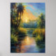 Dans l'étreinte d'un marécage paisible, les eaux s'enfoncent profondément d'une douceur d'obscurité. Une flore verdoyante entoure le bord du marais, tandis qu'une forêt lointaine laisse entrevoir des mystères cachés. Ce chef-d'oeuvre numérique, qui rappelle la peinture à l'huile classique, capture le charme serein des eaux boueuses du marais et de l'environnement luxuriant.