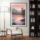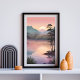 Whispers of Dawn - Serene Sunrise Over Foresting Lake Art Print Breathe in the quiet of a new day with Whispers of Dawn, un dessin artistique captivant qui présente l'embrassement pacifique du lever du soleil sur un lac boisé. Des roses douces, des violets doux et une lumière dorée créent une atmosphère harmonieuse, avec de grands arbres silhoués qui ajoutent une élégance poétique à la scène sereine. Idéal pour apaiser n'importe quel espace - des chambres à coucher et des studios de yoga à des coins de lecture cosy.