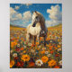 A serene portrait of a white horse standing calmly in a vibrant field of pink and white blossoms beneath a bright blue sky. The flowing mane and gentle stance evoke a sense of quiet nobility, while the burst of floral color creates a dreamy, almost fairytale atmosphere. This piece celebrates the peaceful harmony between animal and nature and is perfect for home decor, nursery art, or anyone who loves equine beauty and floral landscapes.