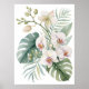 Sophisticated watercolor composition of white orchids with tropical monstera and palm leaves. Elegant botanical art with green and cream tones, perfect for modern, tropical, or coastal interiors.