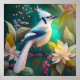 Affiche White Tufé Turquoise Wing Jay Imaginaire Bird