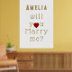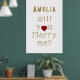 Will you marry me Heart Red Romantic Proposal Poster. Will you marry me in modern fonts with a white heart. Add your name.