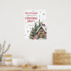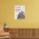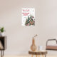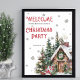 Welcome guests in festive style with this elegant Christmas party welcome sign, featuring a cozy watercolor winter cabin nestled in a snowy forest scene. The cabin, placed in the bottom right corner, is accented by pine trees, holly berries, a wreath on the door, and smoke gently rising from the chimney—bringing warmth and charm to your holiday celebration.