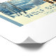 Poster from a wonderful ski resort holiday in the beautiful mountains of Wolf Creek, Colorado! This small poster features an arch with a stunning blue-grey mountain landscape and retro ski boards in an orange tribal pattern in the foreground. The rest is in a lovely light blue tone with the location lettering in a modern font. The design is a lovely combination of retro and modern, and I hope you enjoy it!