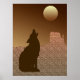 Affiche Wolf Howling à la Lune en Brown et Tan