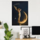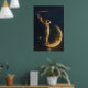 This is a digitally enhanced print derived from an antique 1889 art of a woman standing on a crescent moon and a celestial background of stars and a comet by George Walker.