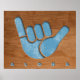 Un symbole de la main Shaka dans un support en bois avec légende "Aloha", dans un effet de découpe réaliste. Pour ceux qui n'ont pas pu faire autant de shopping souvenir hawaïen qu'ils l'avaient espéré, là.
