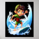 Affiche X-mas Christmas Elf Riding Surfboard Surfboard