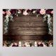 Une affiche extra large de 54 x 40 pouces avec un fond en bois de planches de grange récupérées vintage rustique. Un rameau de florales bordeaux foncé et rose blush cascade parmi les guirlandes de feuillage argenté et les bouquets floraux romantiques aux chandelles éclatants de pivoines et de jets de fleurs artistiques. Cette affiche est vierge pour que vous puissiez entrer votre texte et l'utiliser pour n'importe quelle occasion.