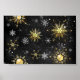 Black Christmas background with gold and black jewelry snowflakes. Golden snowflakes. Xmas.