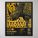 This striking poster features a bold yellow-and-black rhino inspired by Yayoi Kusama’s signature dots and graphic patterns. With its eye-catching maximalist style and retro Japanese exhibition layout, it adds instant impact to any modern or eclectic space.