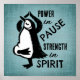 Ce design paisible présente un simple pingouin dessiné à la main dans une pose d'arbre, dressé contre un arrière - plan bleu apaisant texturé en toile. Associée au message inspirant "Pouvoir en pause, force en esprit", cette oeuvre d'art mêle douceur d'esprit à résilience et motivation silencieuses. Le style minimaliste et la palette de couleurs douces créent une ambiance de fond et de pensée, idéale pour les amateurs de yoga, les pratiquants de méditation et tous ceux qui recherchent l'équilibre, la force intérieure et un message de motivation. Un rappel visuel apaisant que le calme peut être puissant, et la force commence à l'intérieur.