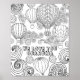 Art doodle zen avec montgolfières et tourbillons relaxants en noir et blanc pour la coloration.