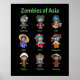 Des zombies de style kawaii représentant différents pays d'Asie : Cambodge, Chine, Inde, Japon, Corée, Philippines, Taïwan et Vietnam.