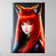 Affiche Zoomorphique jeune femme cheveux rouge renard orei