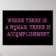 In pink text it reads: "Where there is a Woman, there is Accomplishment." The O's in the quote are actually the sign for Female.