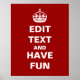 Faites votre propre affiche parodique "Keep Calm and Carry On" ! Pour modifier la couleur de l'arrière - plan, cliquez sur "Customiser", puis sur "Modifier".