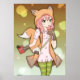 Pocky Fox Cette oeuvre présente une mignonne fille d'anime aux cheveux roses qui se joue comme un renard. Elle porte une robe à coeur rose et des collants vert vif avec un porte-monnaie onigiri (riceball) sur sa hanche. Elle grignote sur le chocolat caillouteux et est adorable. Sa coloration est inspirée de Decora, une sorte de mode de rue japonaise populaire à Harajuku.
