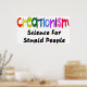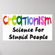 Dans une police de caractères appropriée avec des couleurs vives, le mot "créationnisme" se distingue par les mots plus petits "science pour les gens stupides".
