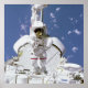 L'astronaute Bruce McCandless II, spécialiste de mission STS-41B, teste une retenue mobile de pieds (MFR) fixée au système de manipulateur à distance (RMS) à bord du Challenger de navette spatiale. McCandless semble marcher sur le fret, mais il est vraiment piloté par la combinaison MFR et RMS. Sa visière de casque reflète des parties de la baie de charge utile qui ne peuvent pas être vues dans la partie plus grande de la photo. Derrière lui, on peut voir les deux gousses du Système de Manoeuvre Orbital (OMS).