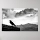 Véritable photographie avec corbeau et montagnes dans l'arrière - plan. Sur l'affiche : Public of One. www.unlaceddreams.yolasite.com