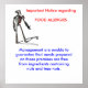 Affiches Avis important concernant les ALLERGIES ALIMENTAIR