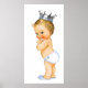 Affiche de baby shower adorable petit prince avec un adorable petit prince portant une couche bébé bleu, des chaussons et une couronne argentée. Cette affiche de baby shower de prince doux fait un excellent cadeau ou ajout à la nurserie de bébé. Vous pouvez ajouter du texte, une couleur de fond et choisir le type de papier ou même toile.