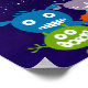 Un gang de mignonnes créatures se tenant autour de nous. Des étoiles et un navire-fusée décorent le ciel nocturne sur un arrière - plan violet foncé.