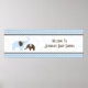 Affiches Bannière de Baby Shower Bleue Point de Couture Élé